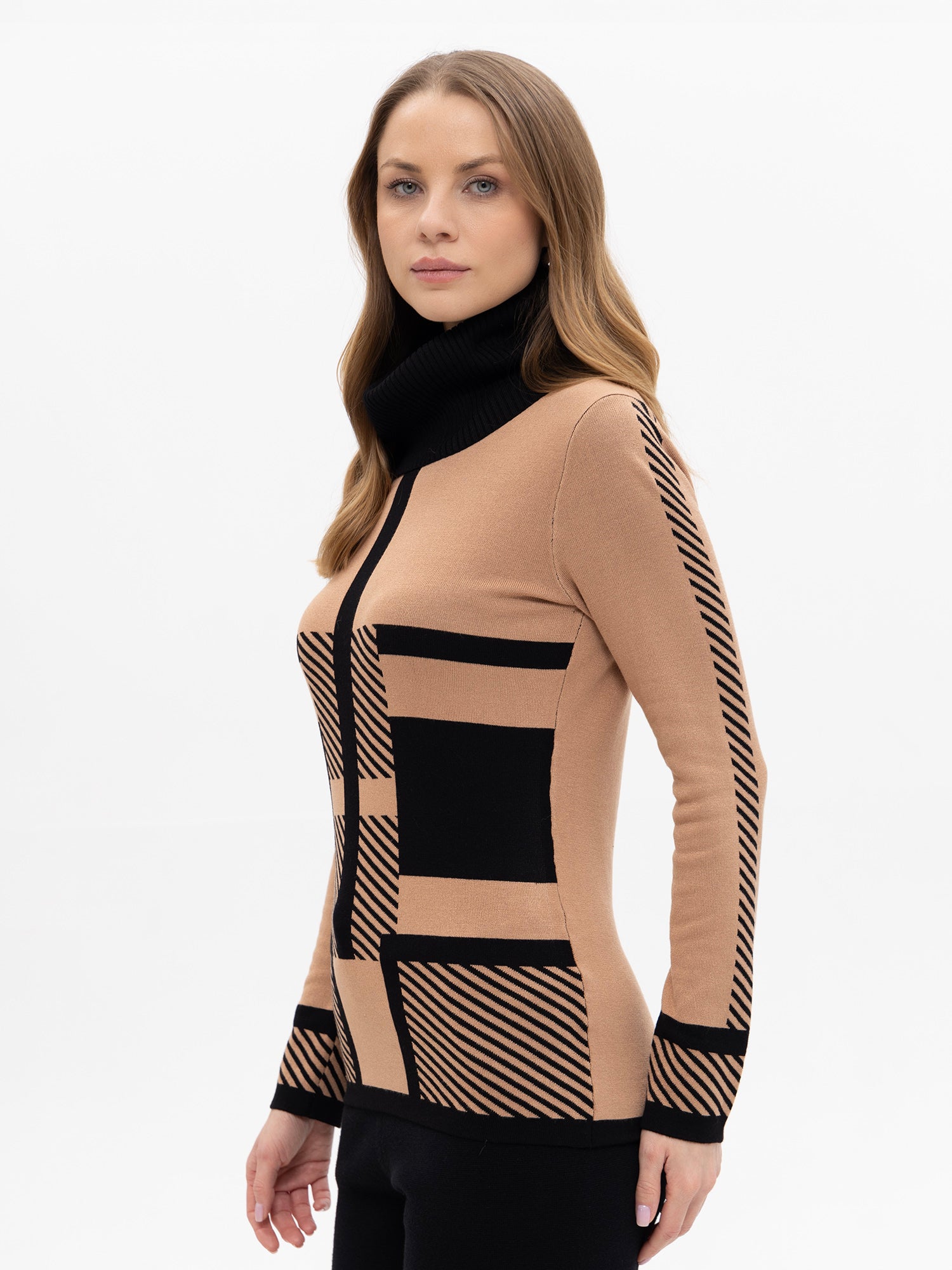 Strickpullover mit Rundhalsausschnitt und Zopfstrickdetail