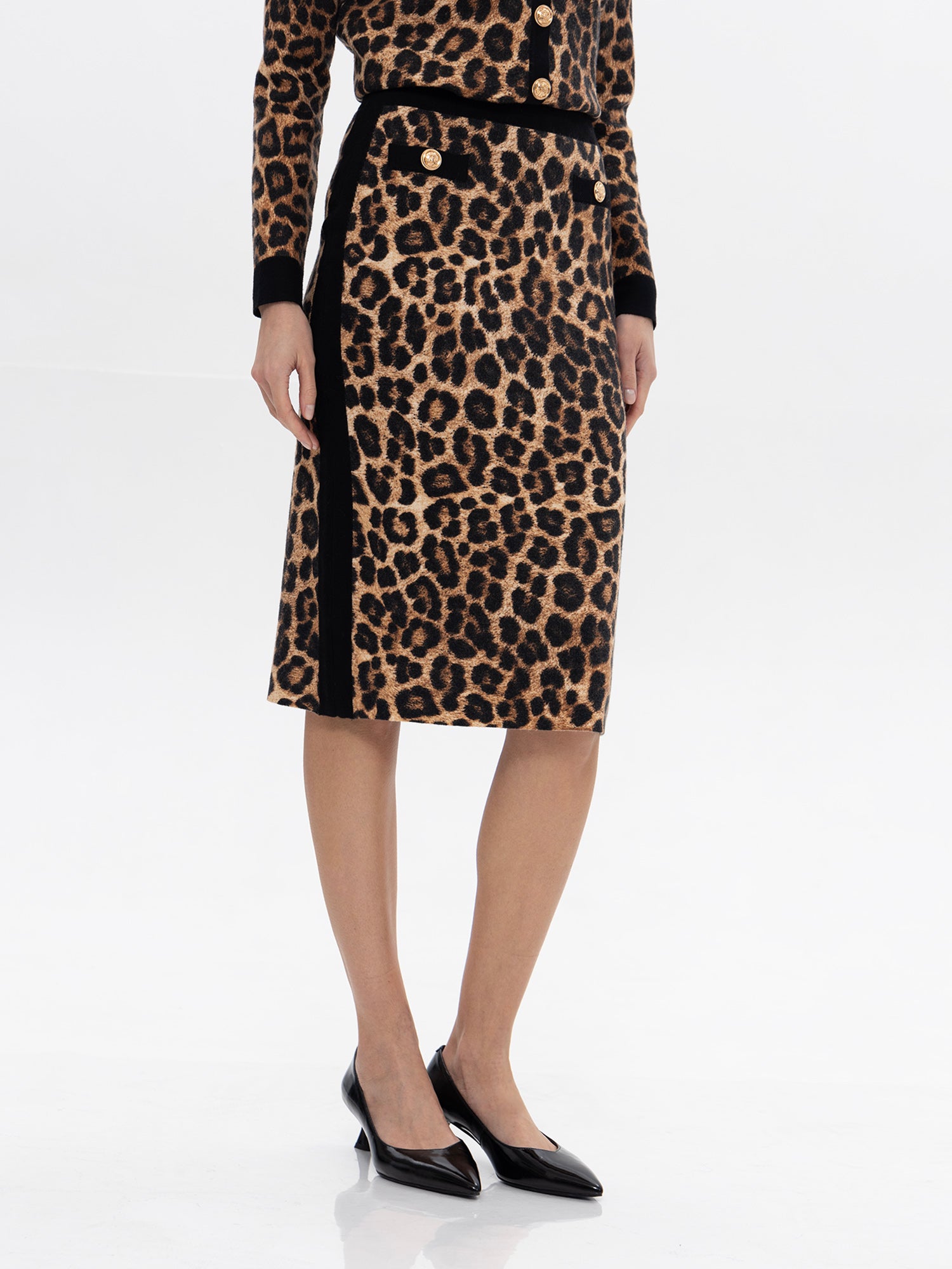 Midi-Strickrock mit Animalprint