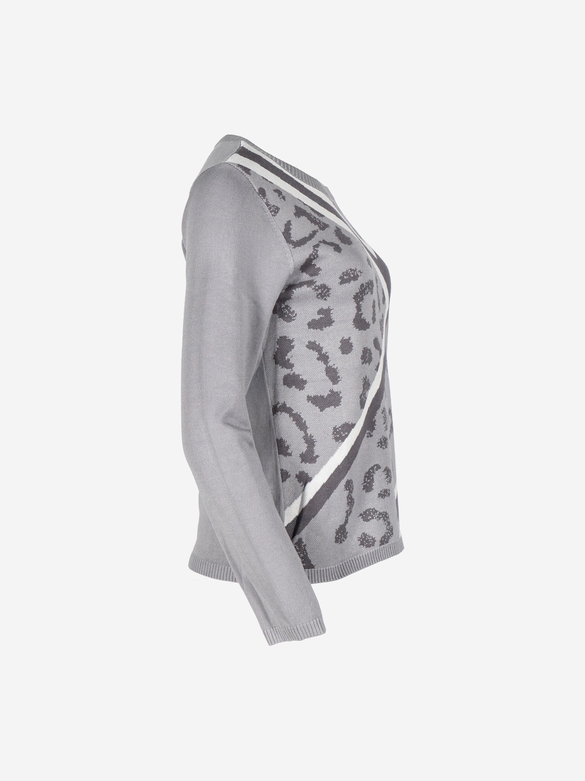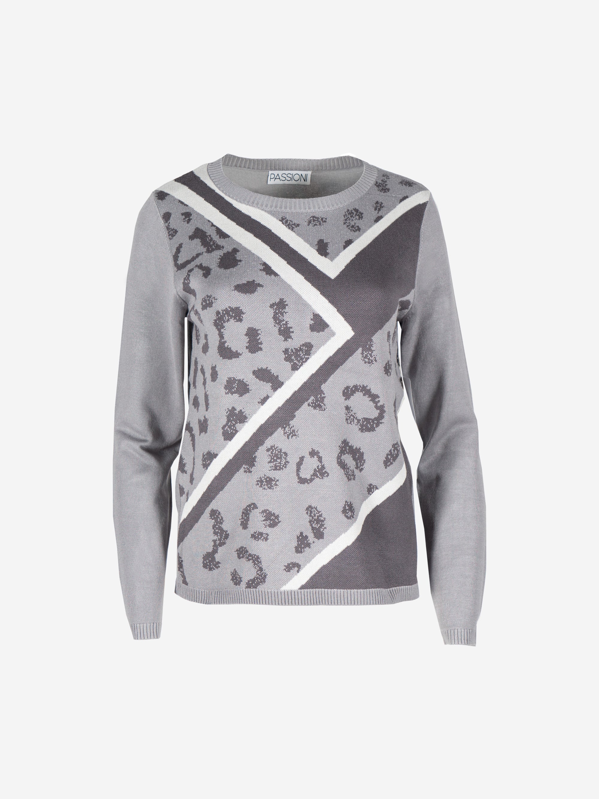 Strickpullover mit einem Mustermix Hahnentritt, Leopardenmuster und Uni