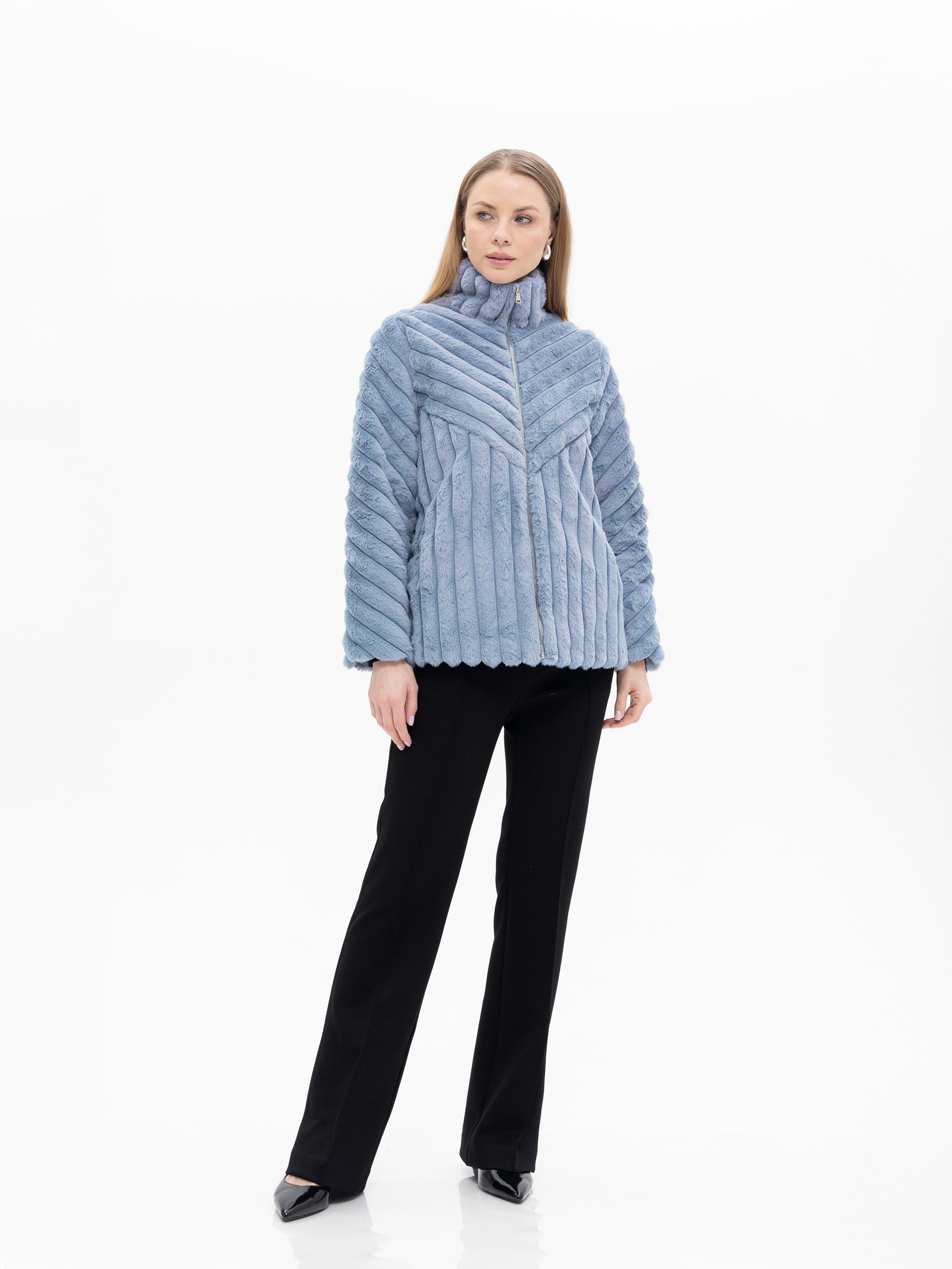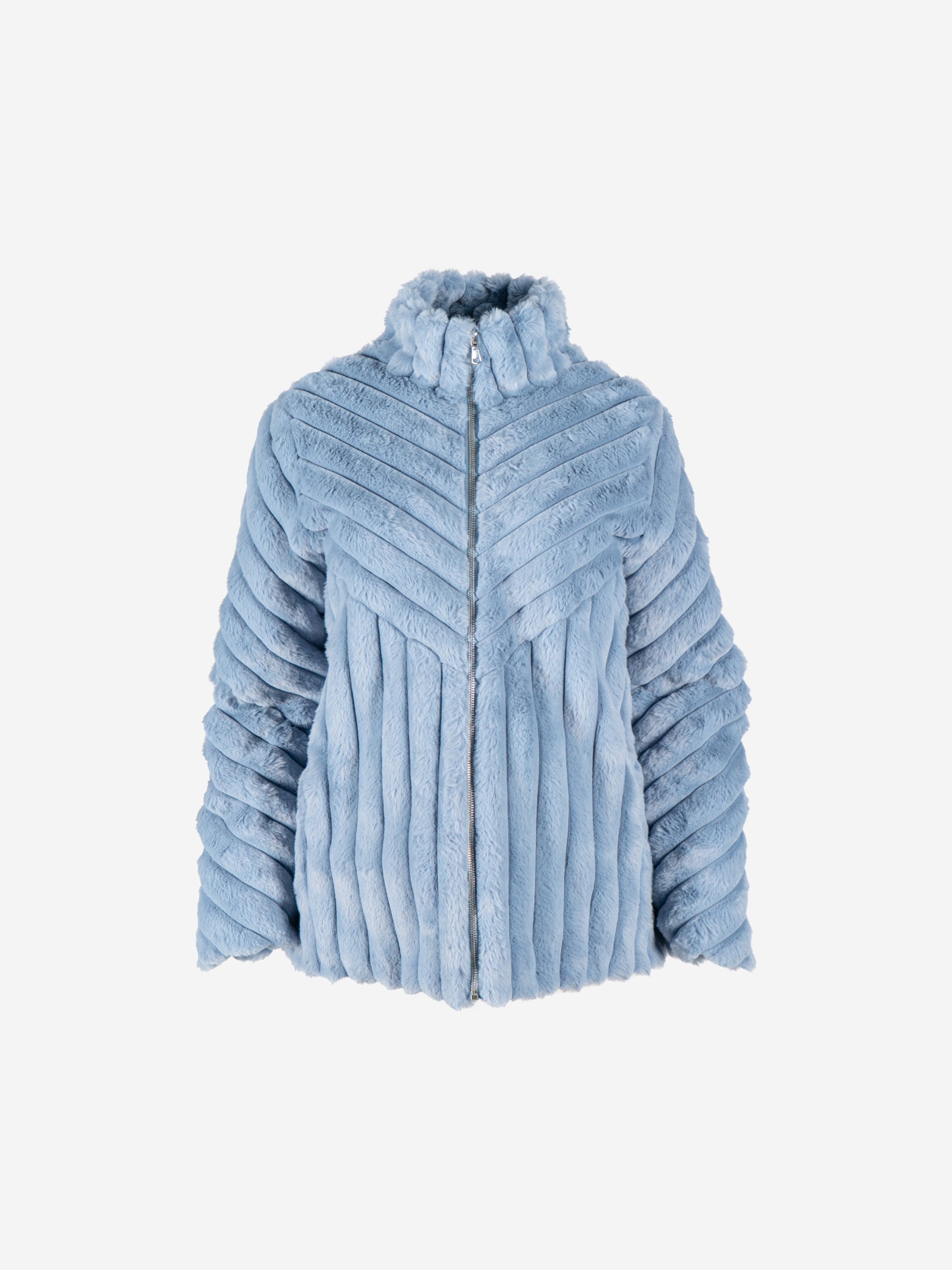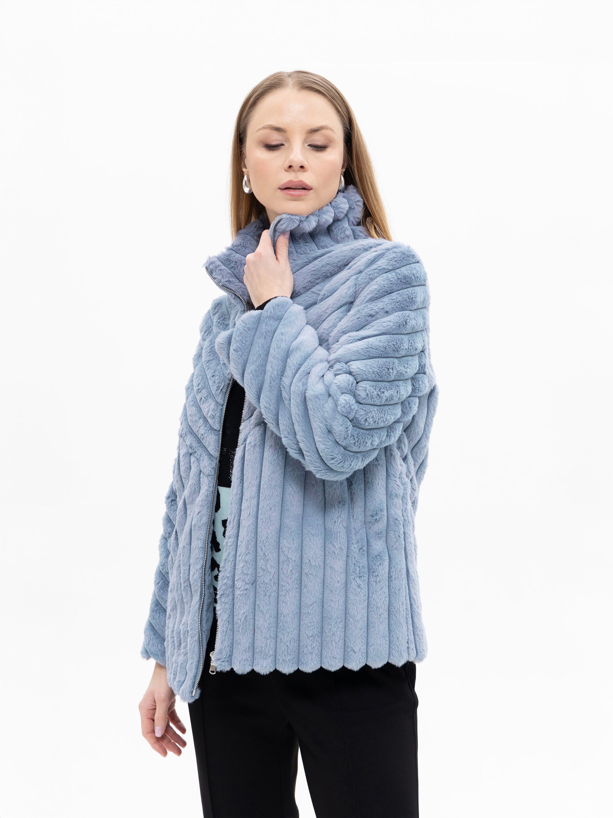 Fellimitatweste mit strukturiertem längerem und kürzerem Fell in Marineblau