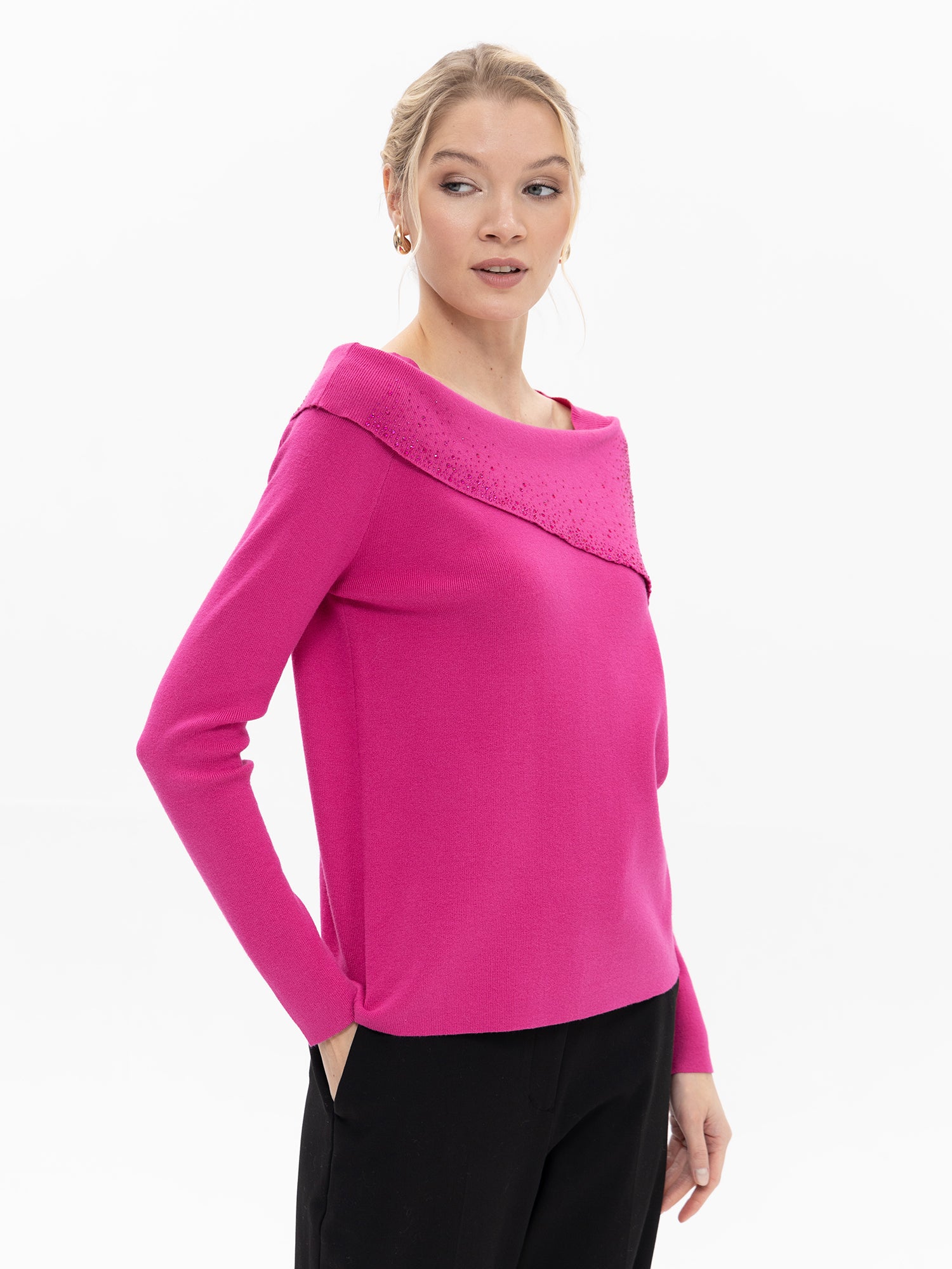 Off-Shoulder-Pullover mit Umschlagkragen